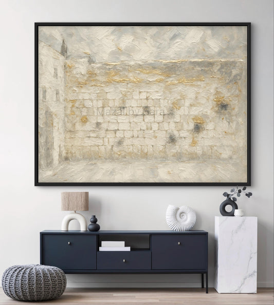 Abstract Kotel Wall Art – Modern Jerusalem Western Wall Print in Blue, White & Gold