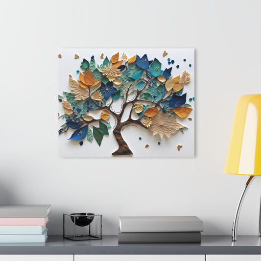 Papercut Style Tree of Life with Hebrew Home Blessing – Blue, Teal, and Gold Leaves