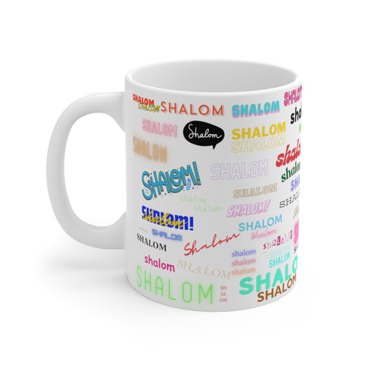 Shalom All Over Ceramic Mug, Jewish Pride and Judaica, Israel-Inspired Design