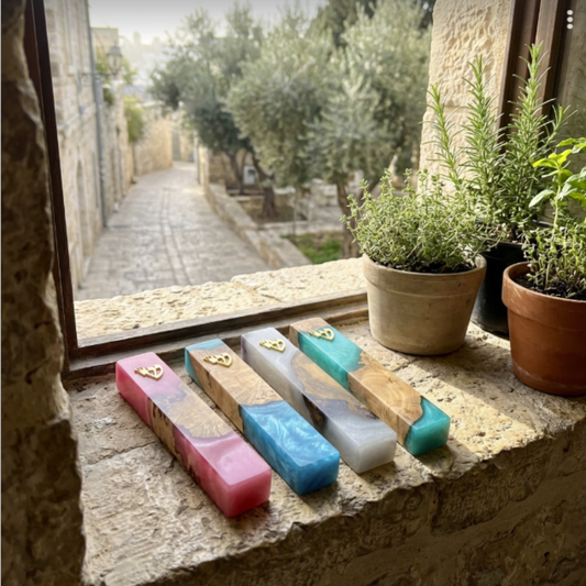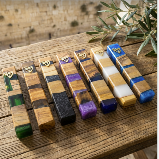 Handmade Olive Wood & Resin Mezuzah Case