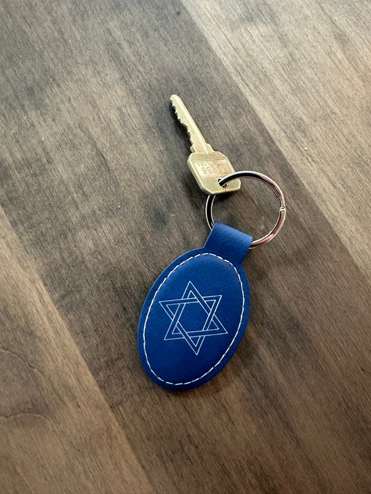Leather Star of David Keychain with Tefilat HaDerech – Jewish Travel Blessing