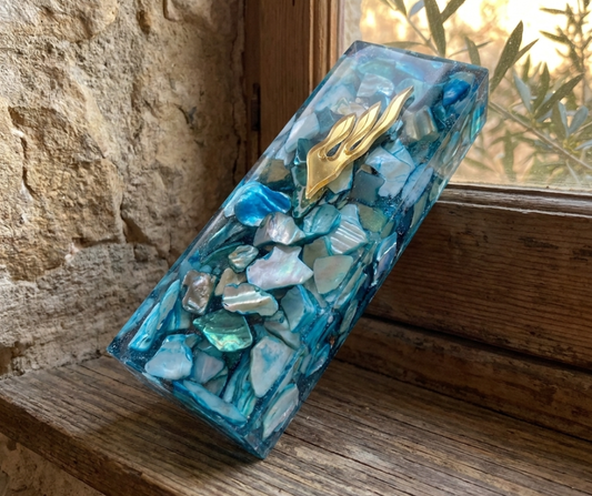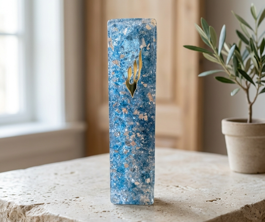 One of a Kind Resin Mezuzah Case – Ocean Blue Shell Design