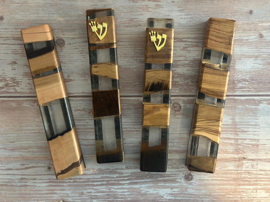 Mezuzah Olive Wood and Resin – Unique Handmade Jewish Decor