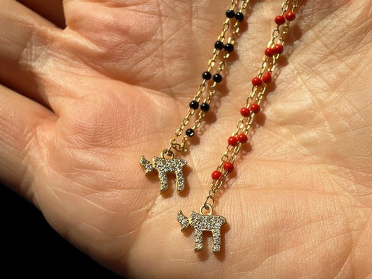 Beaded Chai Necklace – Sterling Silver | Black or Red