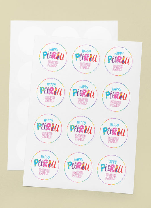 Purim Sticker Set, Customized with Your Name, Mishloach Manot, Purim Gifts, Celebrating Happy Purim, Purim Sticker set