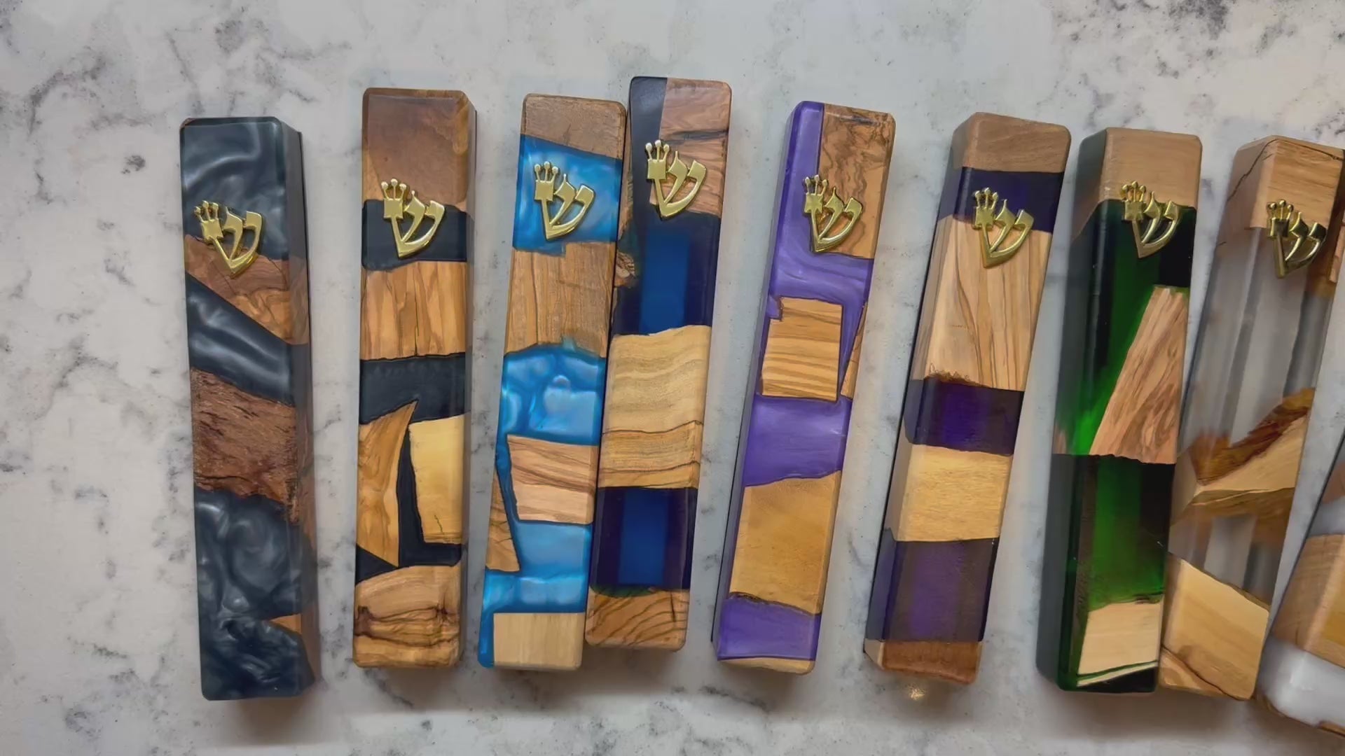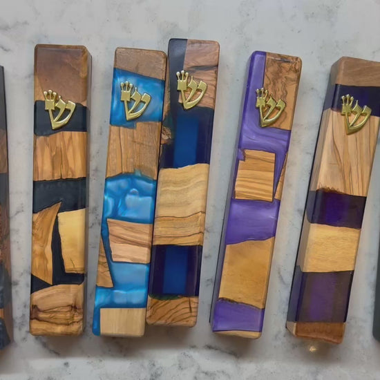 Add a meaningful touch of Jewish tradition to your home with this handmade mezuzah, crafted from natural olive wood and colorful resin. Each mezuzah is truly unique, featuring organic wood grain and vibrant resin swirls—perfect for adding personality and tradition to your Jewish door things collection.